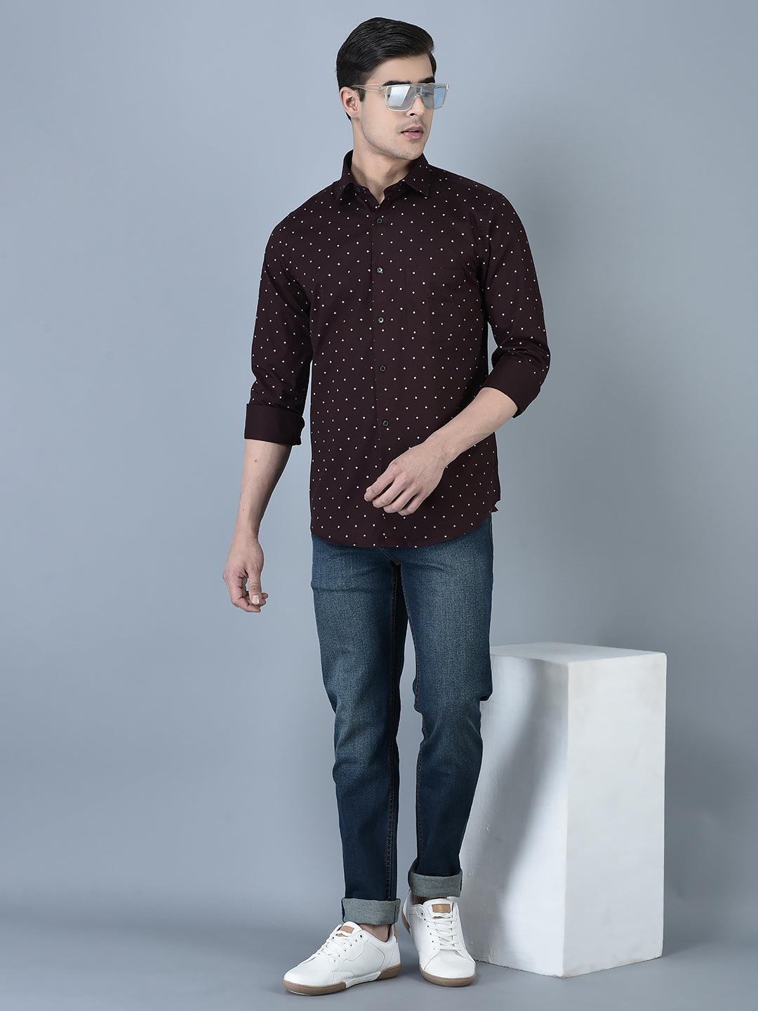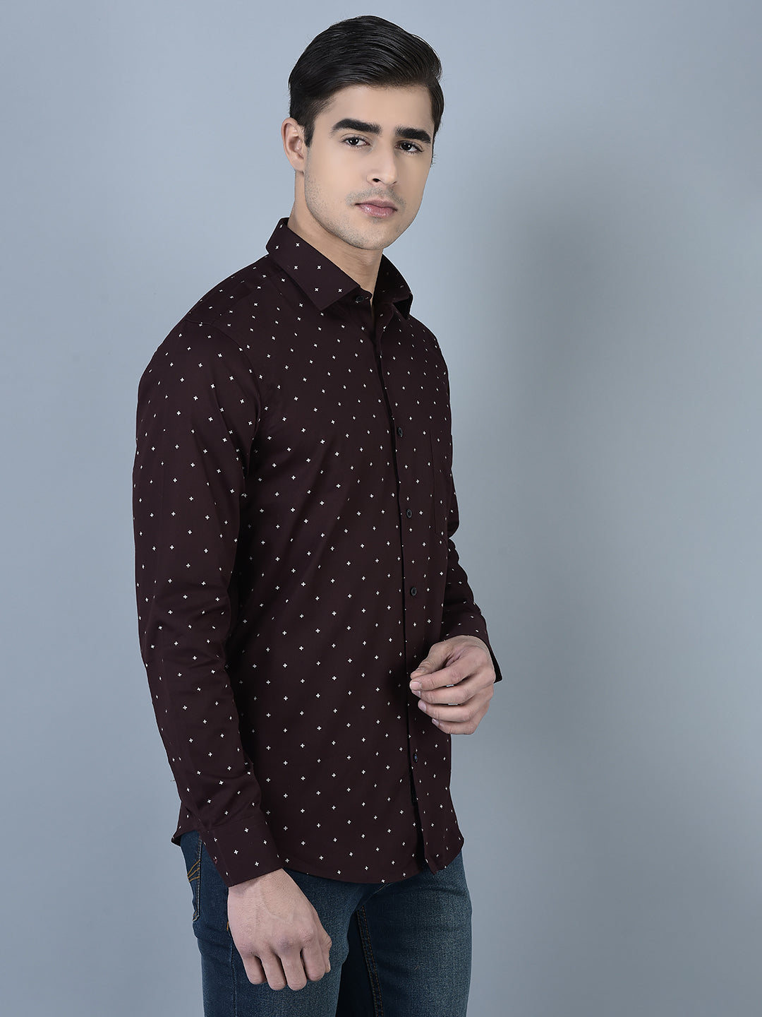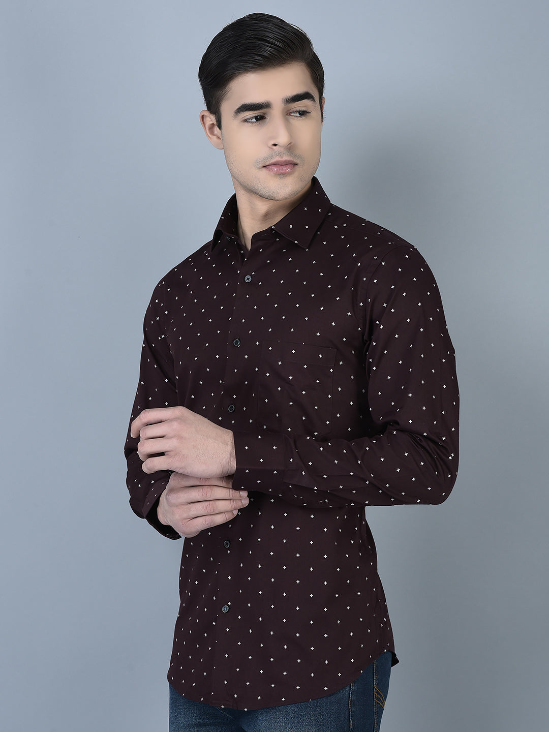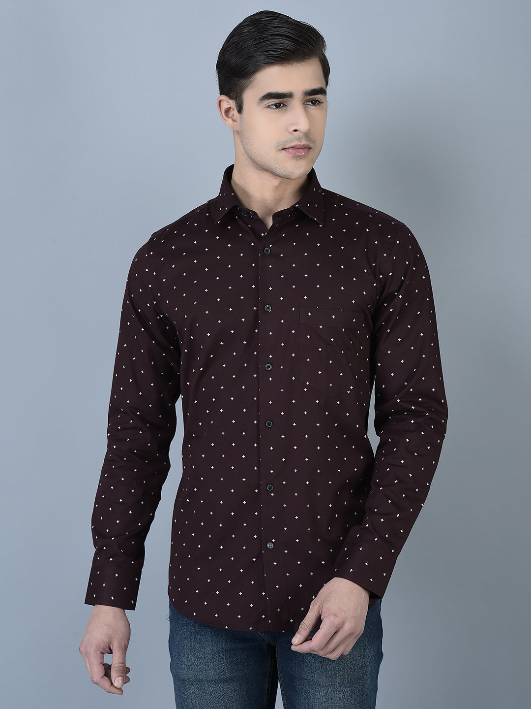 CANOE MEN Formal Shirt Maroon Color Cotton Fabric Button Closure Printed